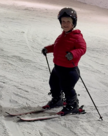 Op de dag dat Yvonne bij ons kwam passen, was haar eerste reactie toen ze haar nieuwe schoenen zag: “Wat zien ze er professioneel uit!” Maar de echte test volgt natuurlijk pas op de piste. We raden al onze klanten aan hun skischoenen eerst even uit te proberen voordat ze op vakantie gaan. En wat een feest was het om de video’s en foto’s te ontvangen: Yvonne op de latten, met een grote glimlach. Na jaren skiën op oude leren schoenen die met ducttape bij elkaar werden gehouden, stond ze eindelijk in volledig op maat gemaakte skischoenen.